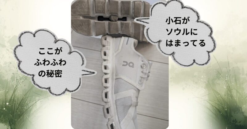 CloudTecの独特なソール形状、実は小石がはまりやすいです。